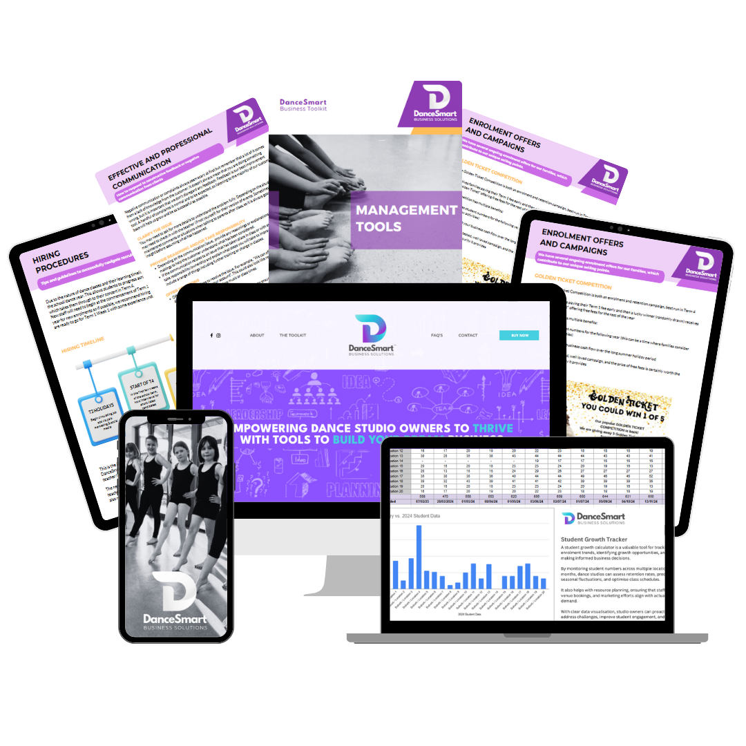 The DanceSmart Business Solutions Toolkit offers a comprehensive set of resources designed for dance studio owners to build and manage their businesses effectively.